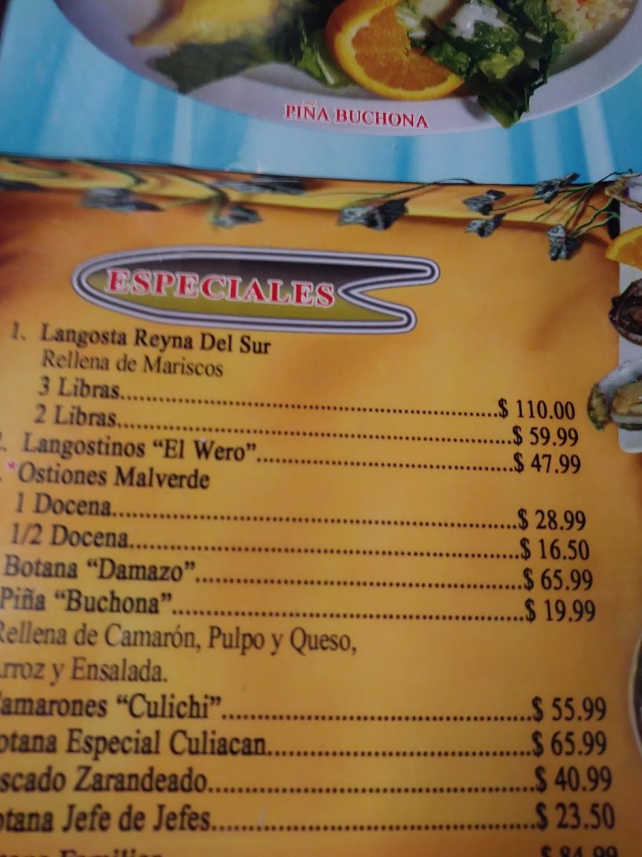 Mariscos Culiacan Menu